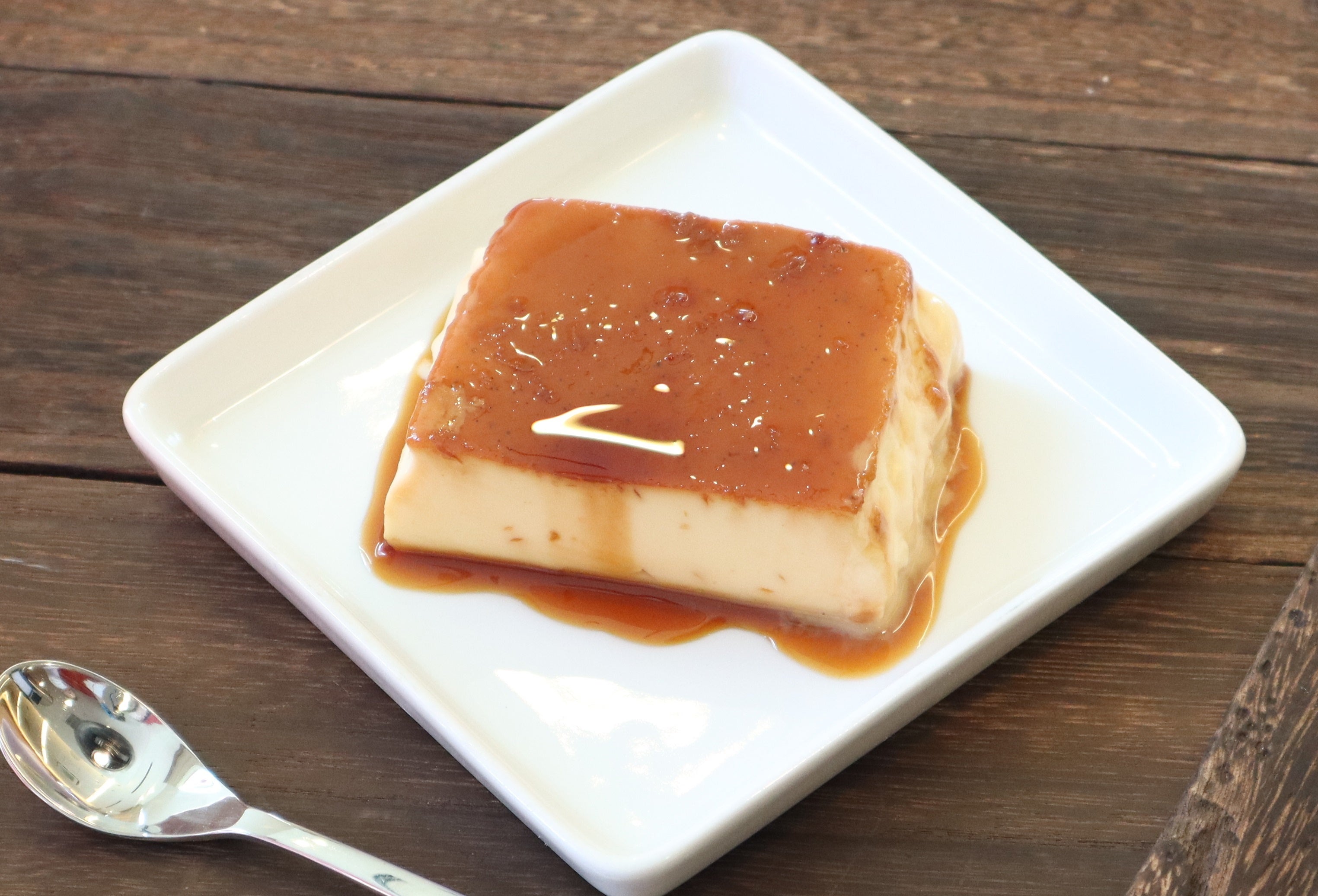 昔の喫茶店に出てくる様な、少し固めでヴァニラとラム酒で香り付けしたプリンです。