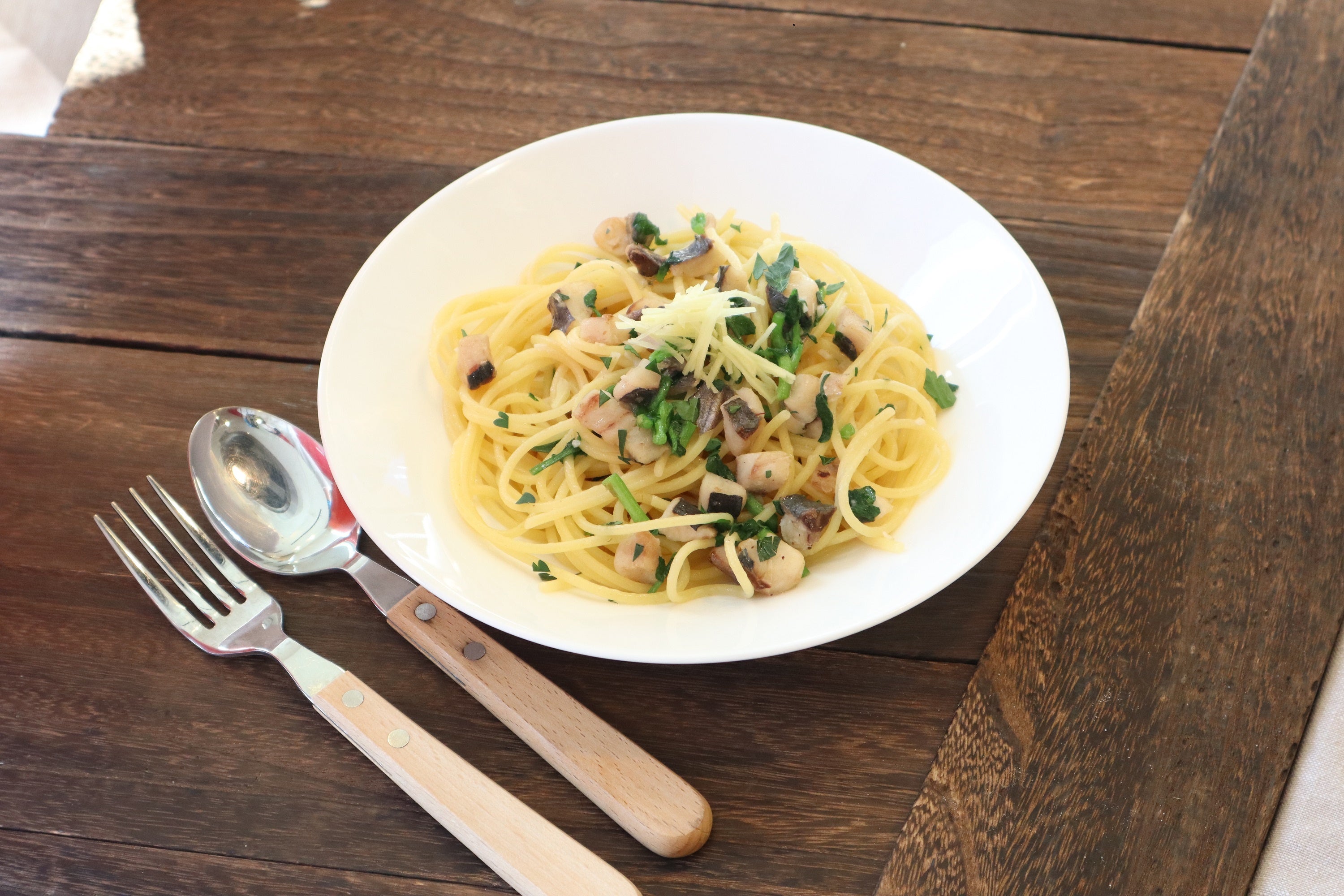 ②鰺とクレソンのオイルパスタ